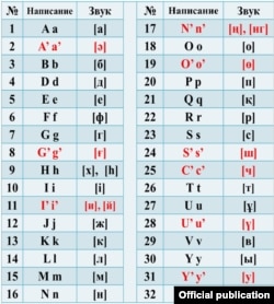 Этим же указом Назарбаев утвердил новый алфавит казахского языка, основанный на латинской графике. В нем 32 буквы, в том числе девять букв с апострофами. Они будут использоваться для обозначения шипящих и других звуков, которых обычно нет в языках, использующих латинскую графику.