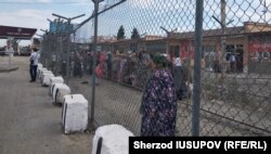 На границе ожидают своей очереди несколько легковых машин и грузовиков. На пропускном пункте, как обычно, наблюдаются очереди из тех, кто пересекает границу в направлении к Узбекистану. В очереди стоят около ста человек, сообщил 25 июня репортер «Озодлика» в Оше Шерзод Юсупов.