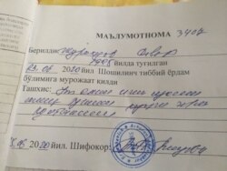 Семья Довара Джуракулова отправила в редакцию «Озодлика» копии справок, полученных в медучреждении.