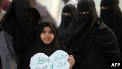 Студентки-мусульманки обеспокоены тем, что власти штата пытаются лишить их религиозных прав. В минувший понедельник сотни людей, в том числе родители студентов, вышли на улицы в знак протеста против ограничений, требуя допустить к занятиям студенток в хиджабе.