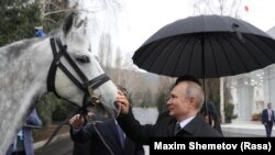В конце встречи Жээнбеков подарил  Путину орловского скакуна.