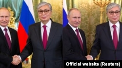 Токаев на встрече с президентом России Владимиром Путиным в Москве во время первого заграничного визита в качестве президента Казахстана.