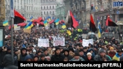 Участники марша требовали принять законы об импичменте президента и назначить новые выборы и отправить в отставку генпрокурора Юрия Луценко.
